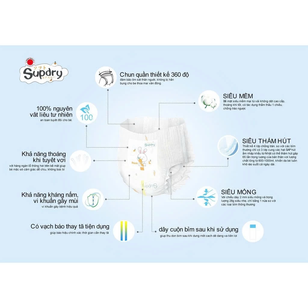 Tã Bỉm SUPDRY Tã Dán Quần Nội Địa Nhật Bản Siêu Thấm Hút Giữ Nước Hiệu Quả Bé Thoải Mái Vận Động