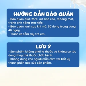 – Bảo quản dưới 25°C, nơi khô ráo, thoáng mát, tránh ánh nắng trực tiếp.
