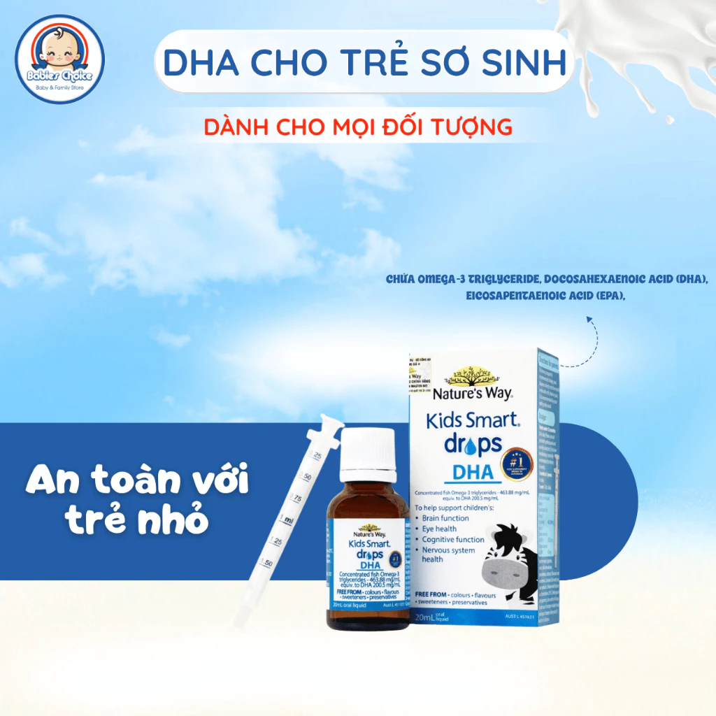 DHA Cho Trẻ Sơ Sinh Nature’s Way Kids Smart Drops DHA Tốt Cho Não Bộ, Mắt Hệ Thần Kinh 20ml