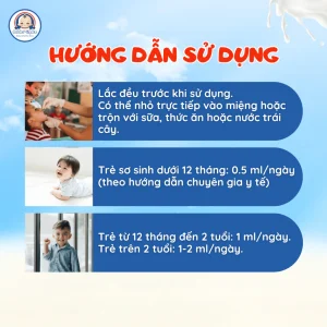 – Có thể nhỏ trực tiếp vào miệng hoặc trộn với sữa, thức ăn hoặc nước trái cây.