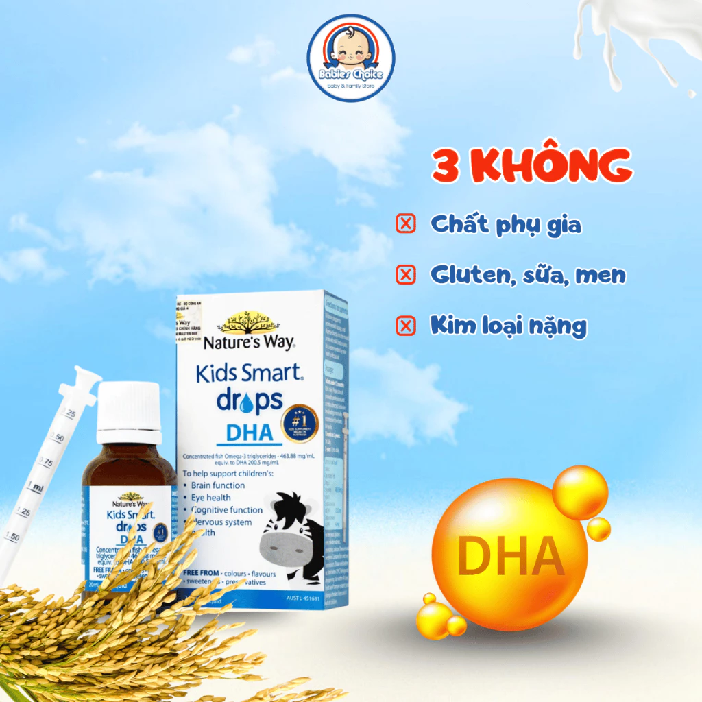 – Là một trong các thương hiệu hàng đầu về chăm sóc sức khỏe con người tại Úc, Nature’s Way với sản phẩm Nature’s Way Kids Smart Drops DHA dạng giọt cung cấp DHA cho bé, giúp bé đạt được trí thông minh vượt trội và đôi mắt tinh anh.
