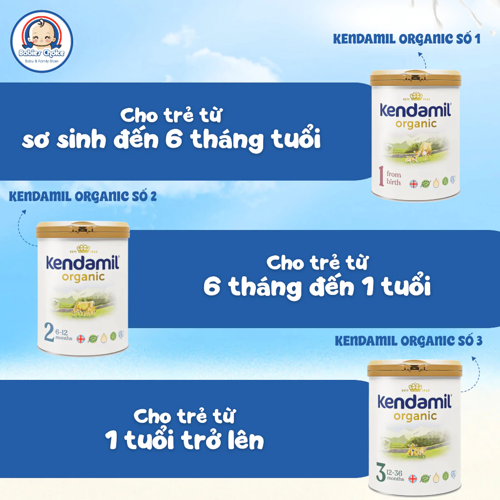 – Sữa bột Kendamil Organic số 1: Trẻ sơ sinh đến 6 tháng tuổi.