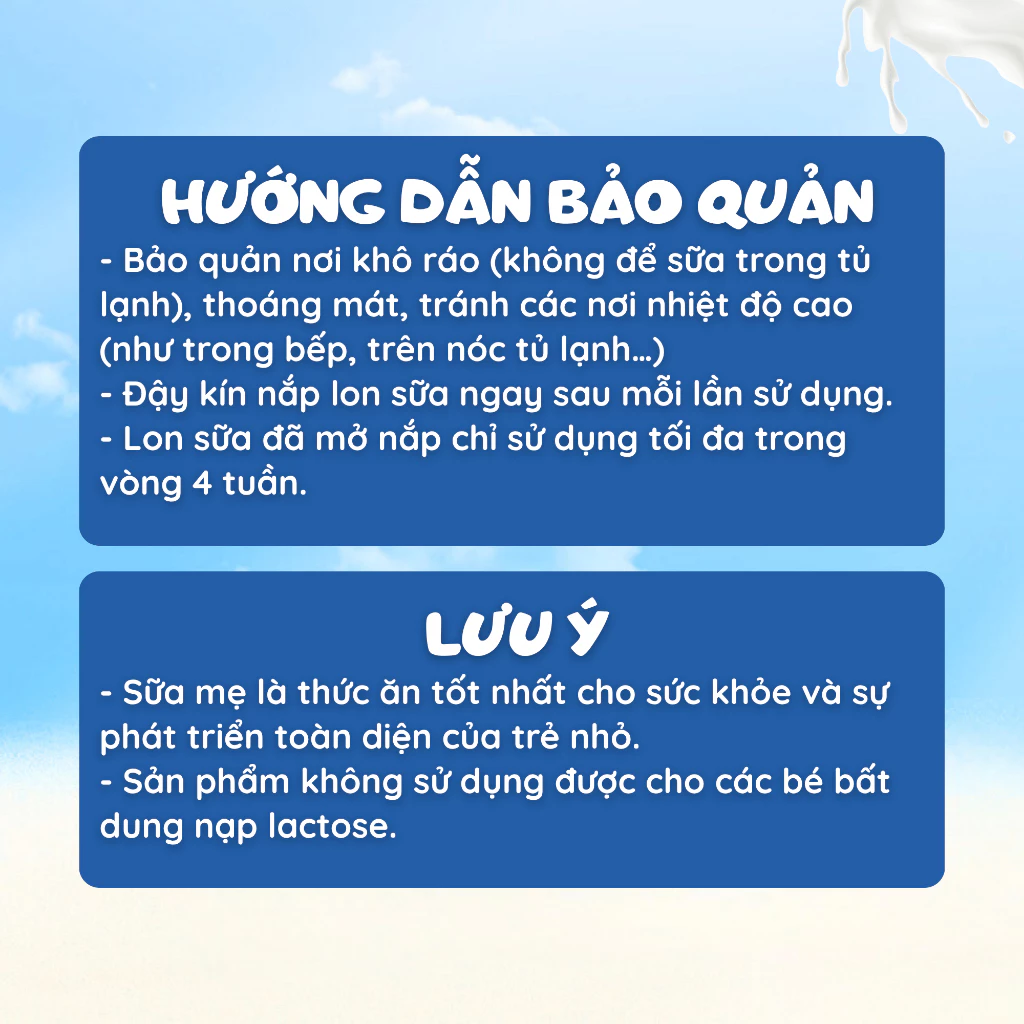 – Lon sữa đã mở nắp chỉ sử dụng tối đa trong vòng 4 tuần.