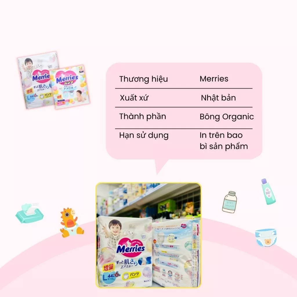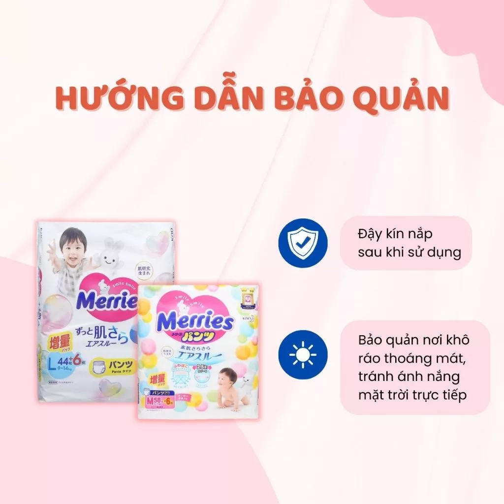 Tã Bỉm Quần MERRIES Cộng Miếng Chuẩn Nội Địa Nhật Bản Siêu Thoáng Mát Thấm Hút Nhanh Chất Lỏng