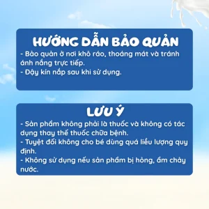 – Bảo quản ở nơi khô ráo, thoáng mát và tránh ánh nắng trực tiếp.