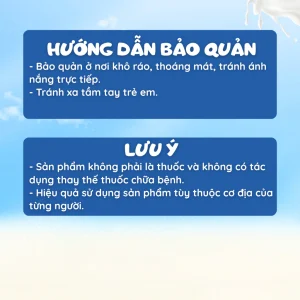 – Bảo quản ở nơi khô ráo, thoáng mát, tránh ánh nắng trực tiếp.