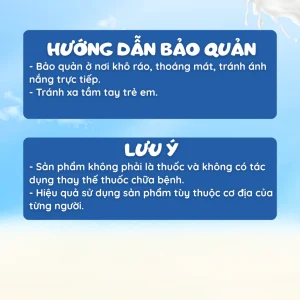 – Bảo quản ở nơi khô ráo, thoáng mát, tránh ánh nắng trực tiếp.
